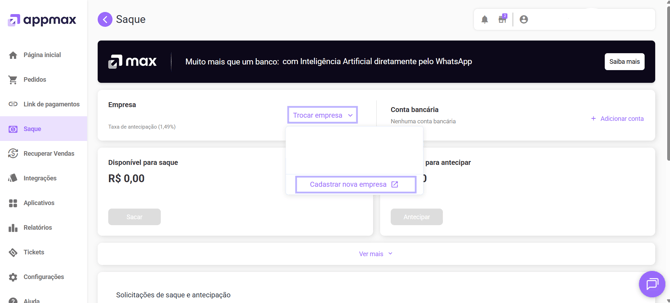 Saiba como criar uma nova empresa na plataforma Appmax de forma rápida e segura.